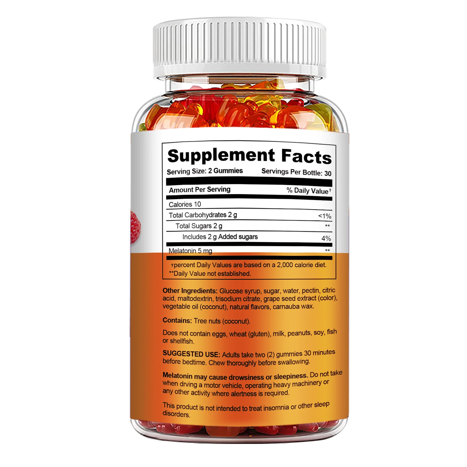 Delicious fruit-flavored gummies: Contains 5 mg of melatonin per serving. These melatonin gummies come in a fruity flavor that everyone loves; they're enjoyable and easy to chew.