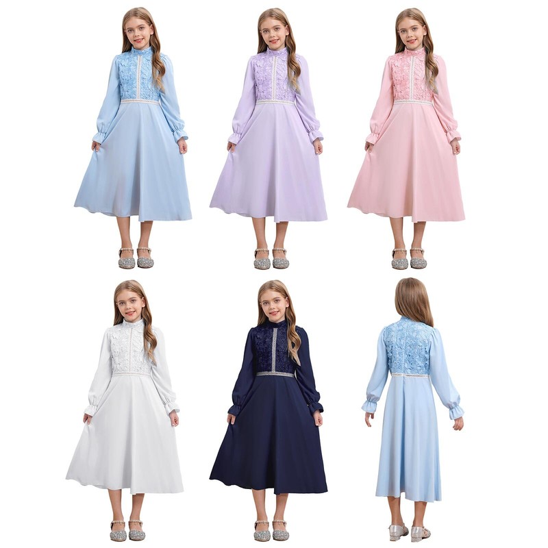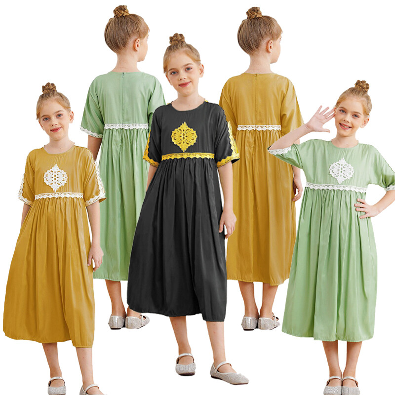 Round neck and puffy sleeve design add a touch of cuteness and elegance, following the popular fashion elements for kids’ clothing.
