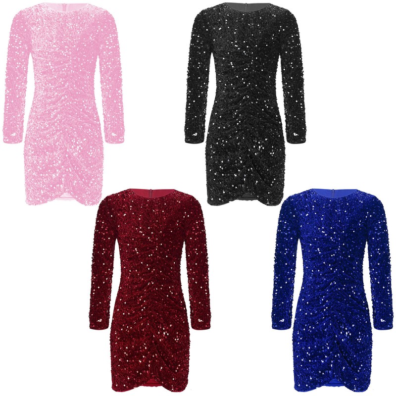 Made from a blend of nylon and spandex, the dress is stretchy and comfortable, allowing kids girls to move freely during the party.