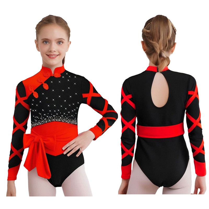 The long-sleeve provides more coverage and is suitable for different temperatures, while the rhinestones and color-block design bring a fashionable and eye-catching look.