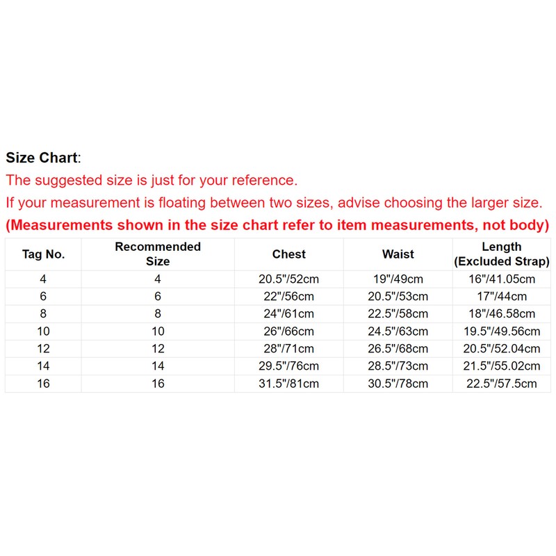 | Tag No. | Recommended Size | Chest | Waist | Length(Excluded Strap) |