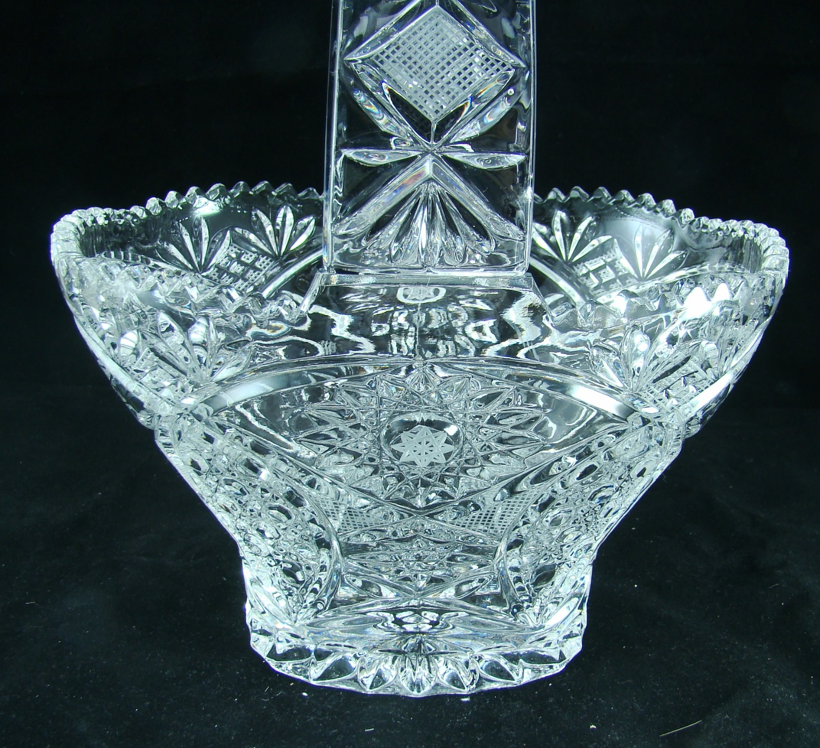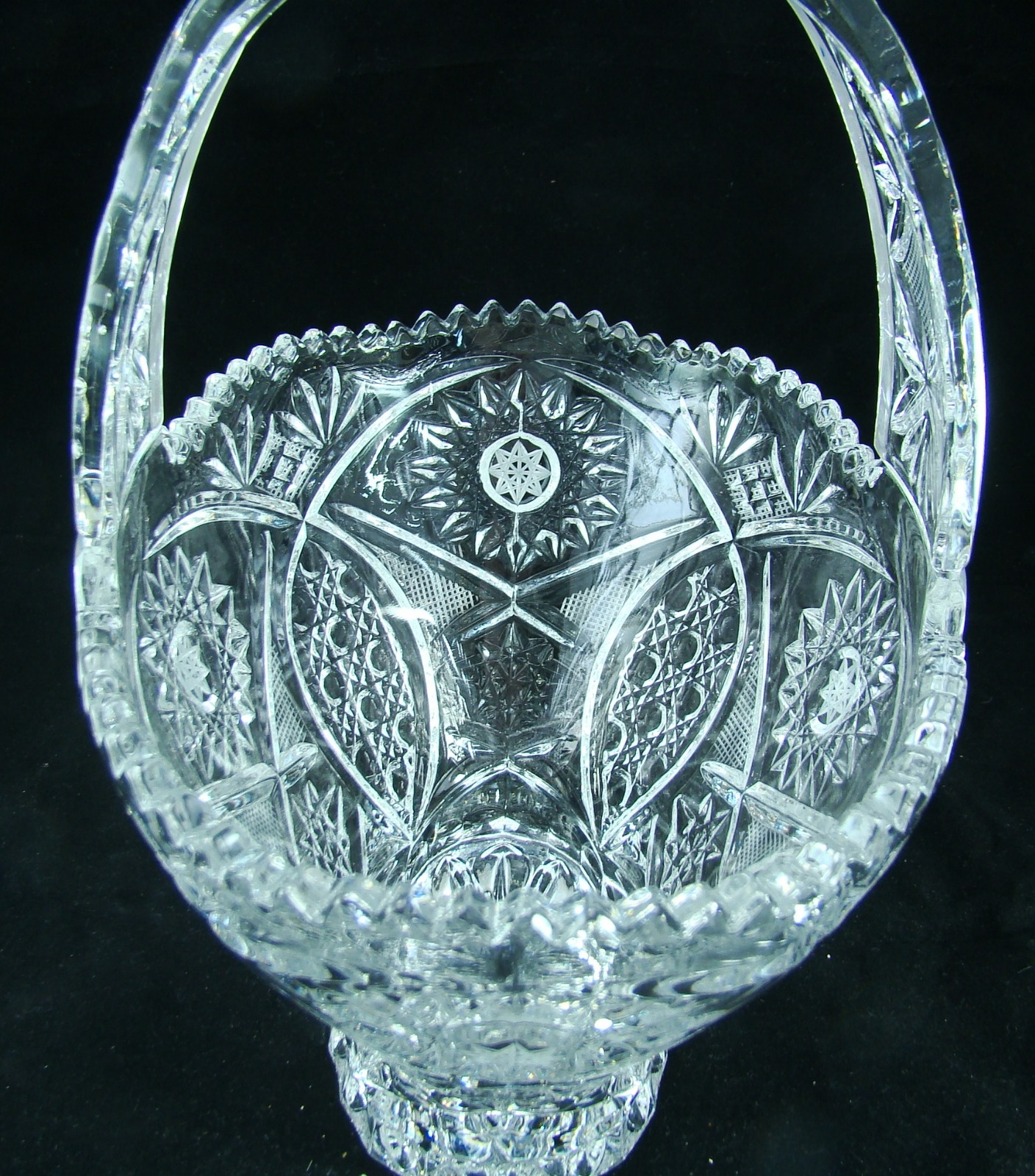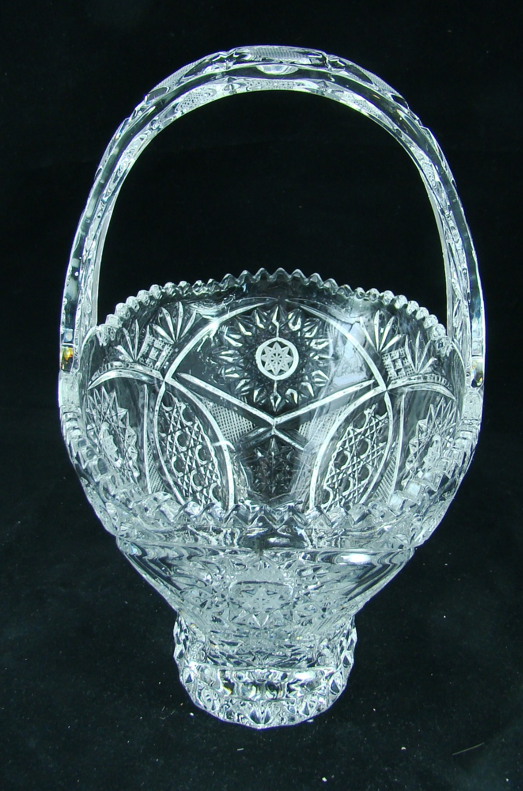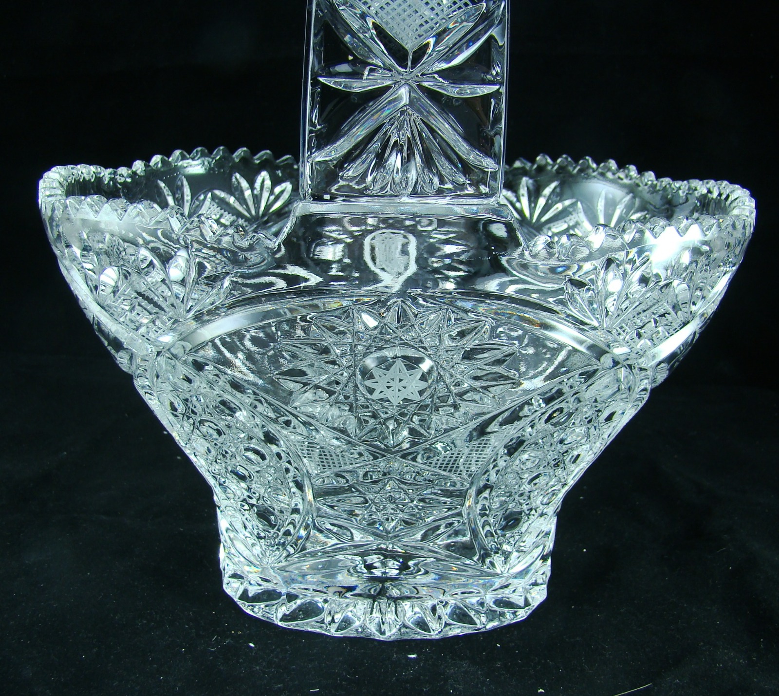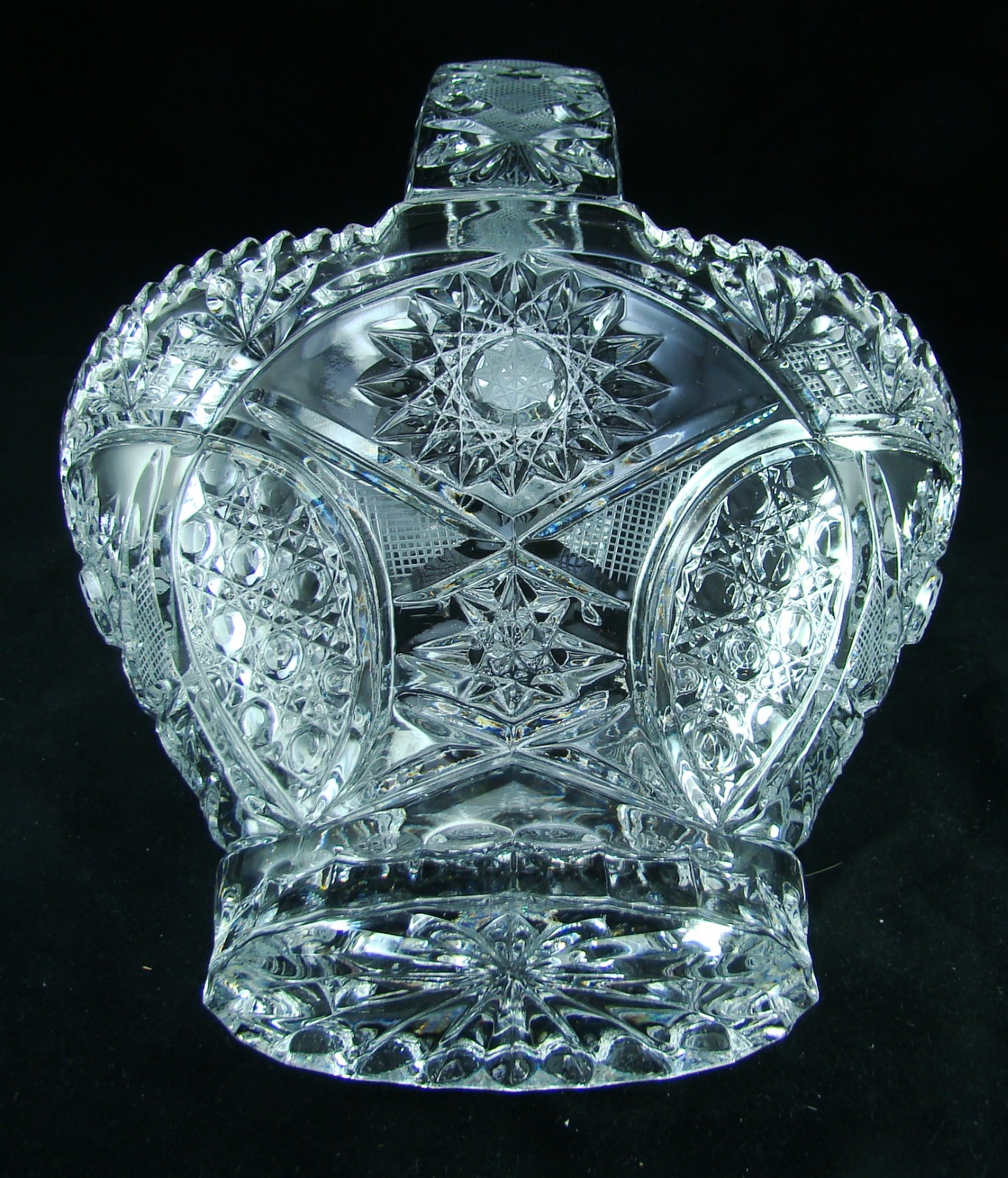 Pressed Glass hand cut details STAR Pattern Handled Basket Vase EXCELLENT Pressed Glass hand cut details STAR Pattern Handled Basket Vase EXCELLENT Click images to enlarge