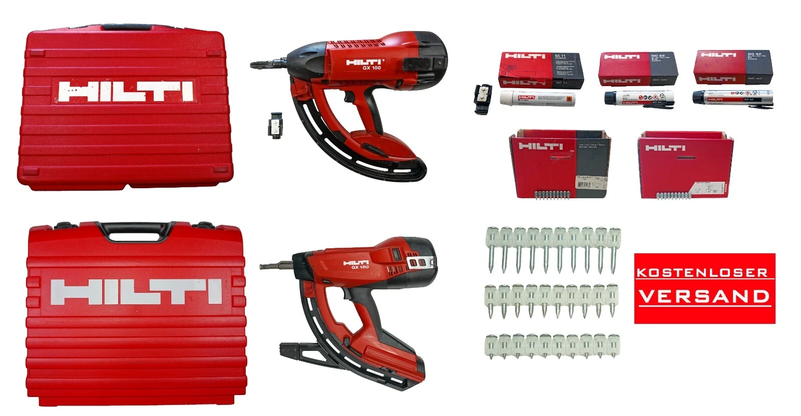 Hilti GX 100, GX 120, GX 3 Gasnagler e vari gas - cartucce e chiodi a seconda della selezione.