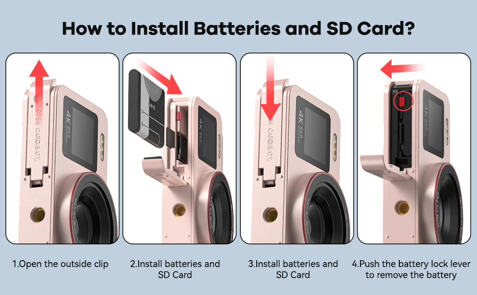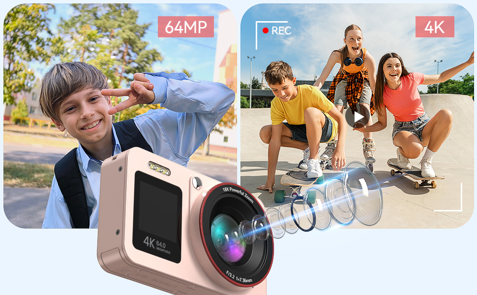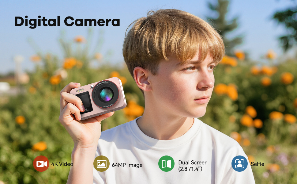 【Portable design and long battery life】The lightweight and compact body of this digital camera is ideal for travel and daily use. With two rechargeable batteries and a high-capacity 64GB memory card, you don't have to worry about energy or storage space – so you can capture every special scene without interruption. Whether close-ups or wide-angle moments, this digital camera allows you to enjoy maximum freedom and recording quality.
