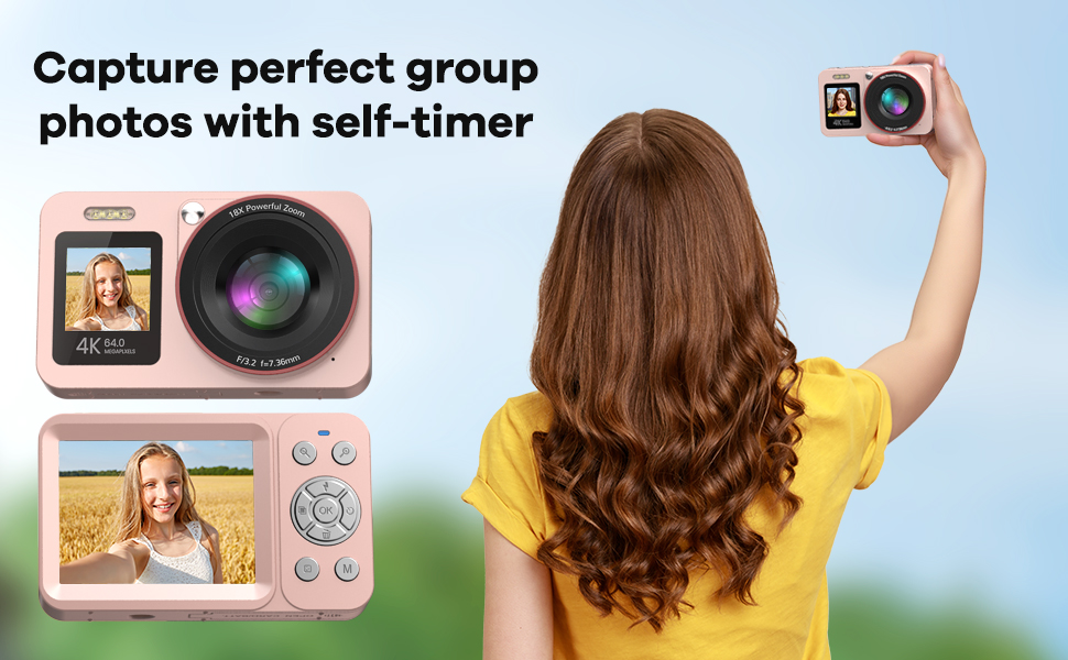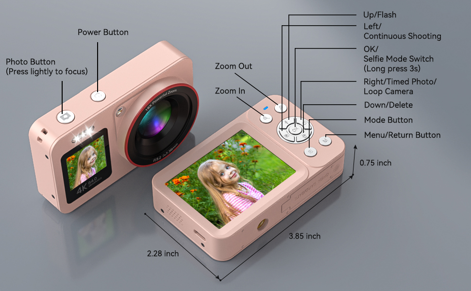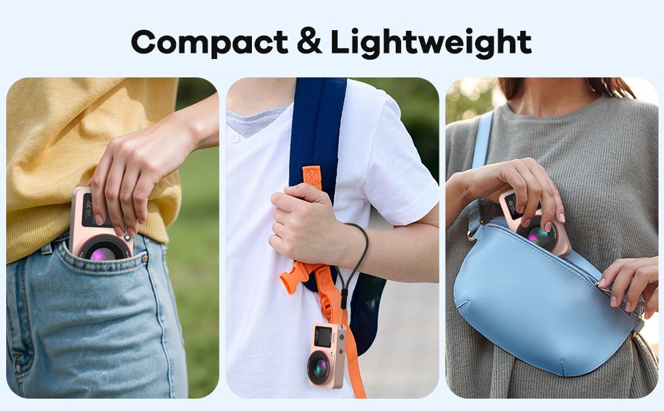 【Multifunctional display】This digital camera is equipped with a 1.4 inch front screen that presses the OK button for 3 seconds to switch to selfie mode, which is convenient for selfie and vlog recording. The 2.8-inch display on the back provides a wider field of view and a clearer preview effect. Built-in anti-shake function and auto-fill light technology to meet your photo requirements in different lighting conditions, it is a high-quality choice for recording life and recording vlogs.