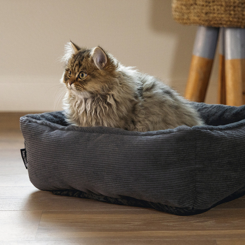 Das Katzenbett Moza ist nicht nur gemütlich, sondern überzeugt auch optisch. Die elegante Farbe Anthrazit passt perfekt in moderne Wohnräume und ist zudem in zwei weiteren Farben erhältlich – so finden Sie die passende Variante für Ihr Zuhause.