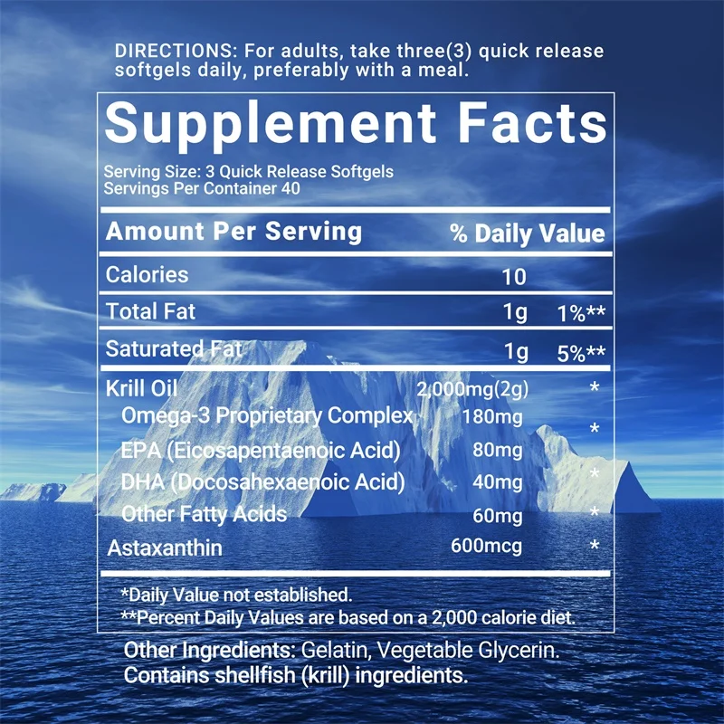 Premium Antarctic Krill Oil: We use only premium krill caught in Antarctic waters, providing 2000 mg per serving.