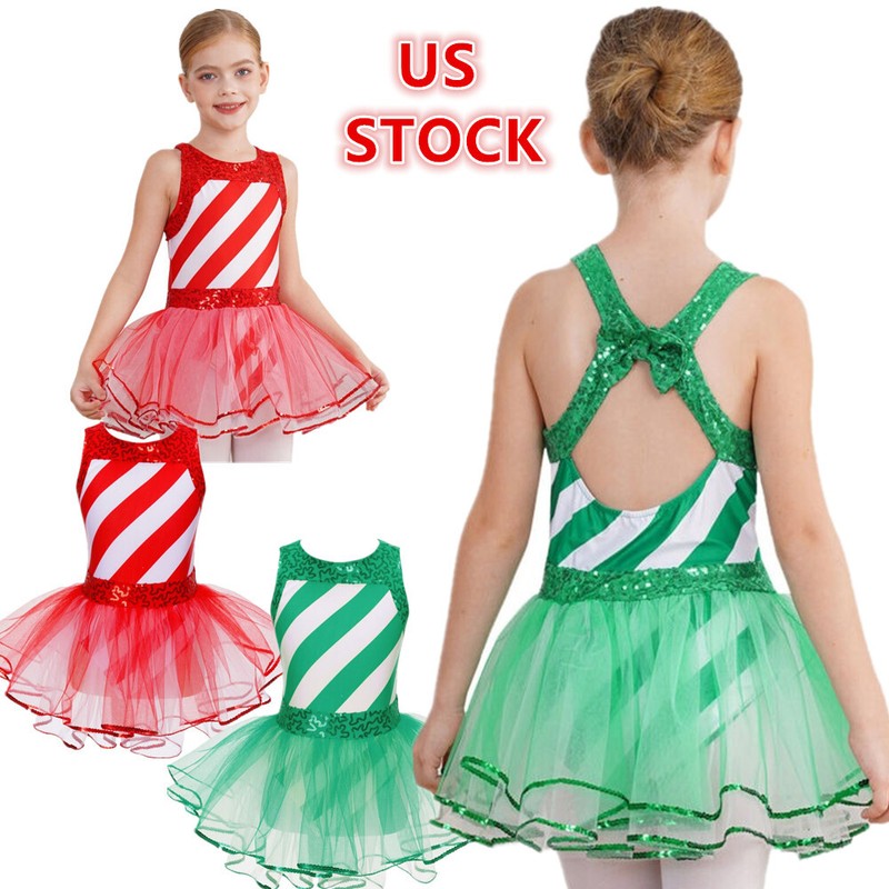 Kids Girls Christmas Sleeveless Adjustable Straps Bowknot Adorned Stripes Print Mesh Tutu Dress.