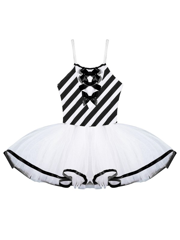 Adjustable straps, stripes print, bowknot adorned, mesh tutu dress, cami dress.