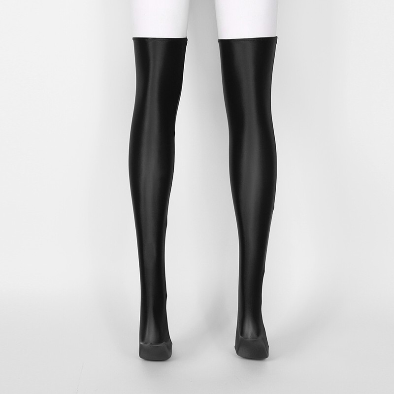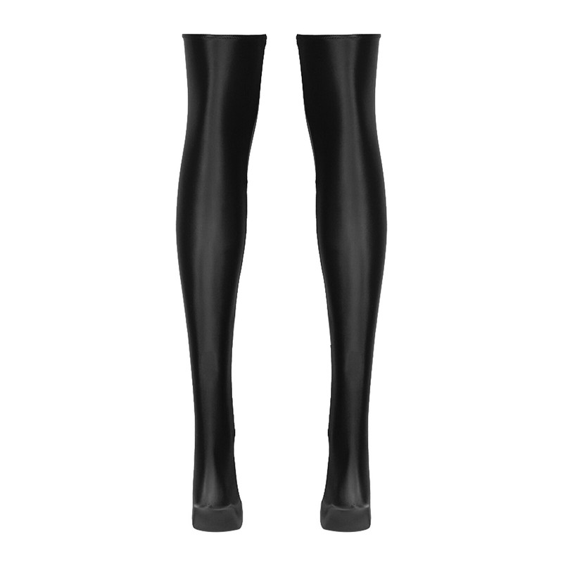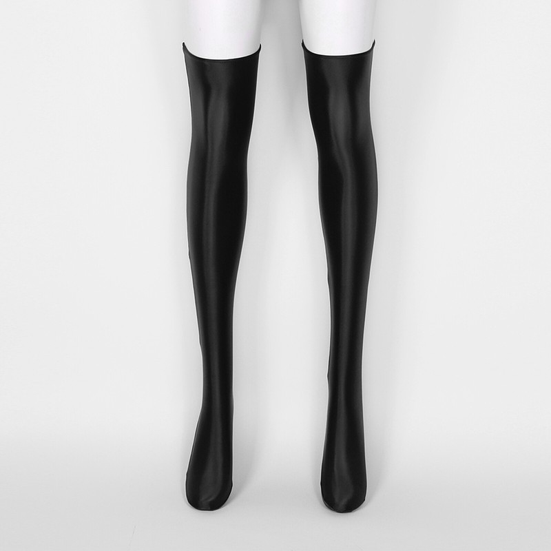 1 Pair Womens Glossy Thigh High Stockings Solid Color Stretchy Socks.
