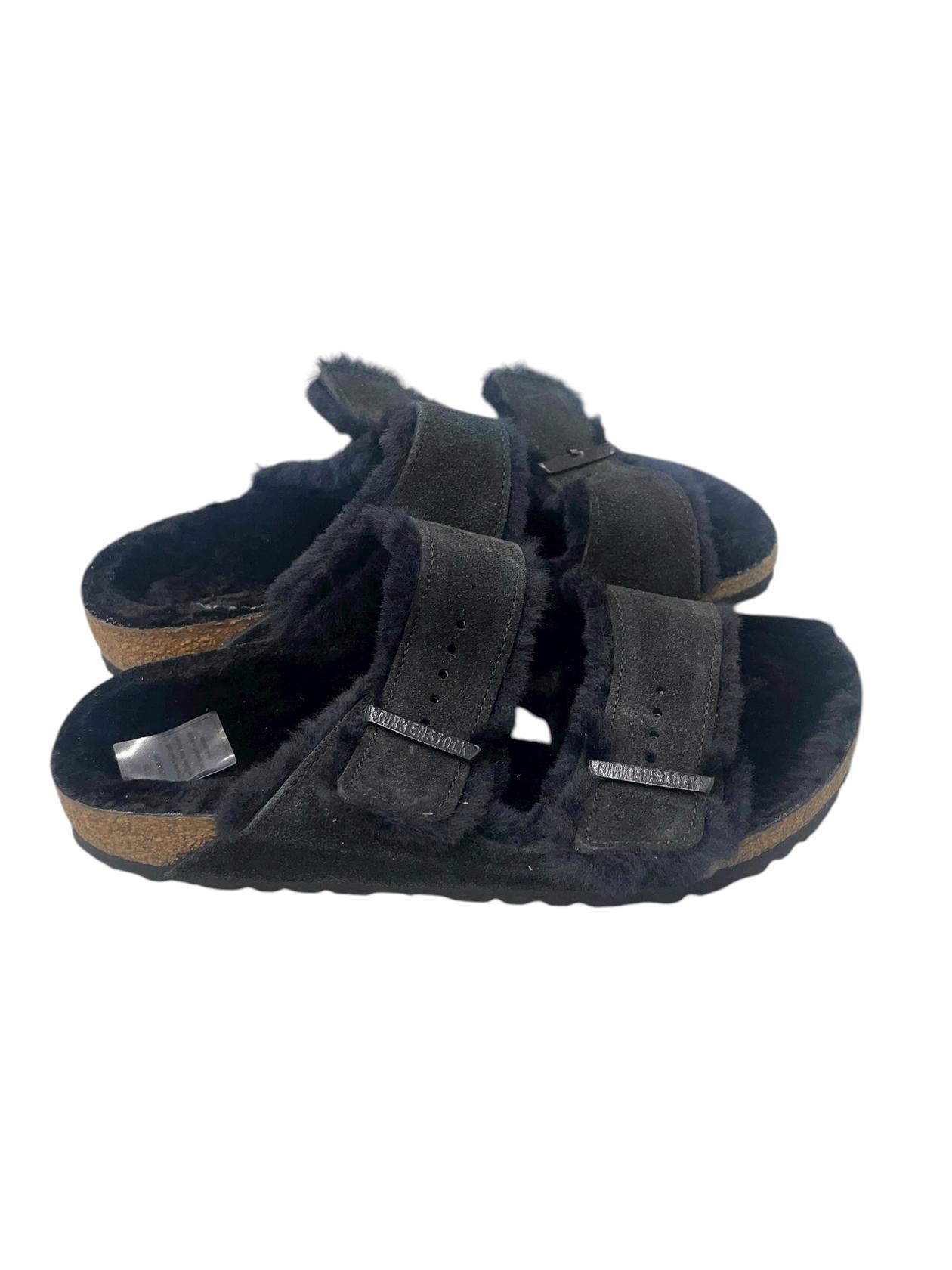 Birkenstock Arizona Faux Fur 0752663 Suede Sandals Black Narrow Fit EUR 37 US 6