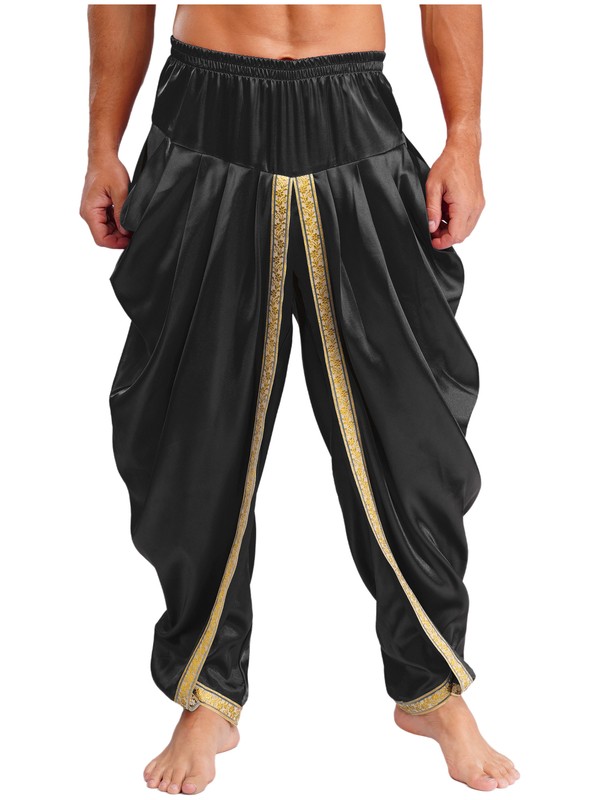 Unique draped style that blends traditional charm with a modern aesthetic. Gold trimming, elastic waist ensure maximum comfort.