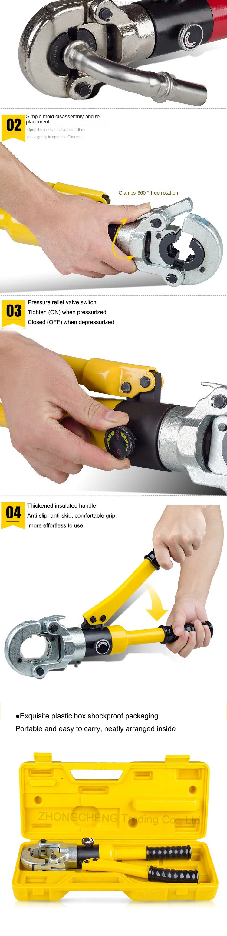 The crimping head can be freely rotated 360 degrees, which can work in narrow places;