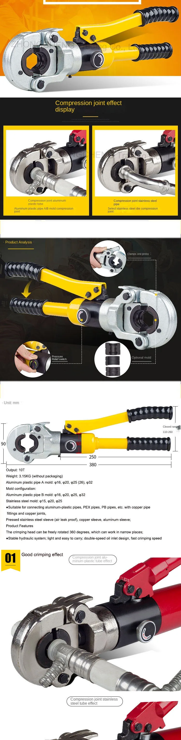 ●Stable hydraulic system; light and easy to carry; double-speed oil inlet design, fast crimping speed