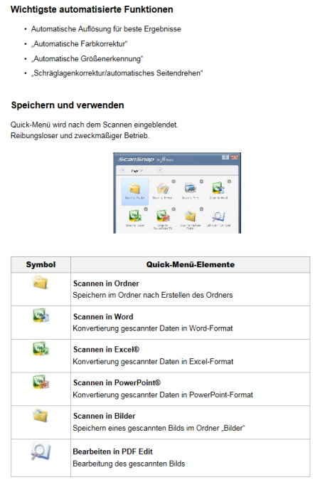 Enthaltene Software ScanSnap Manager und ScanAll Pro V2