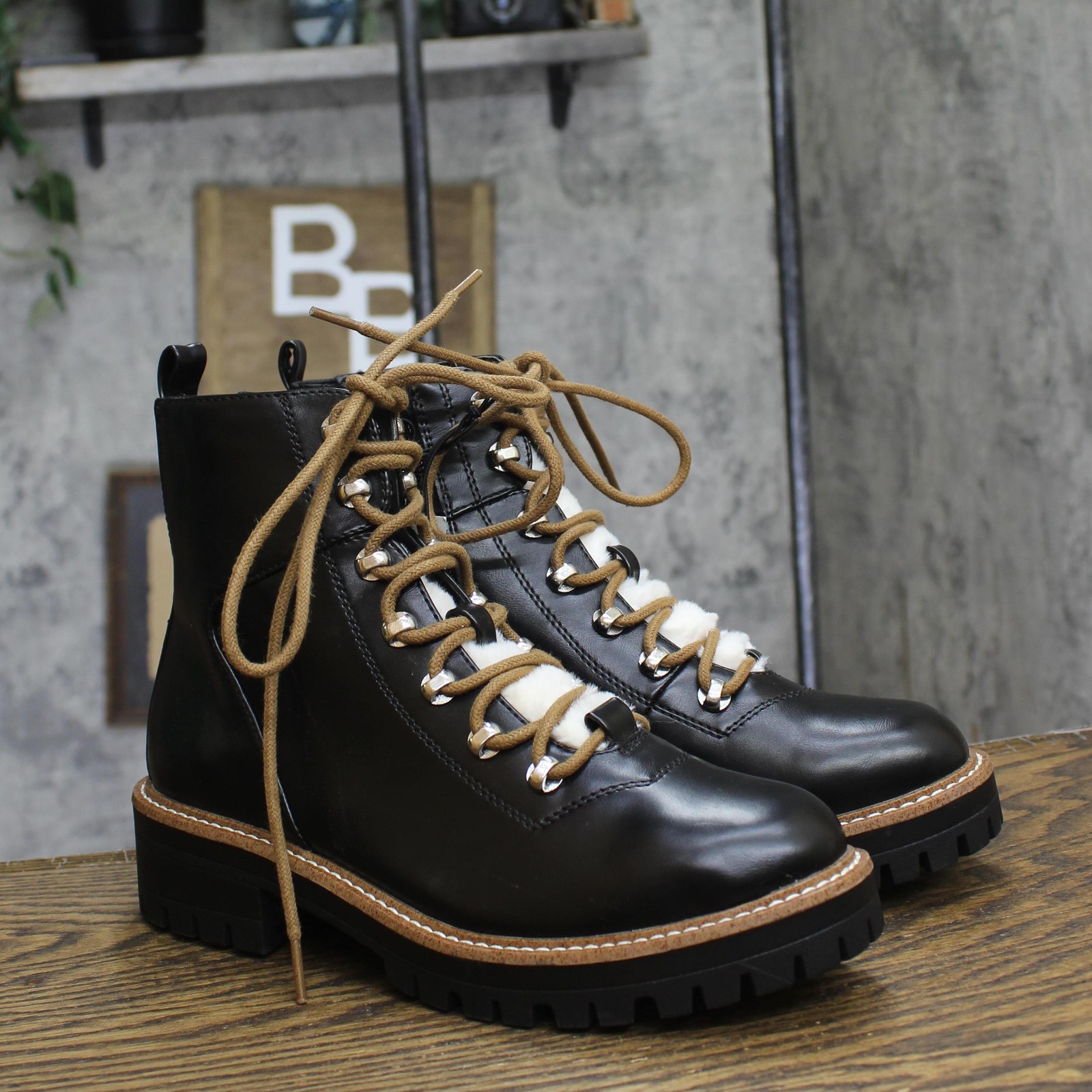The Leighton Hiking Boots from A New Day are the perfect mix of rugged and casual style. Boasting a memory foam footbed and soft lining, these medium-width boots will keep you comfortable all day. They're designed with a lace-up tie front and a side zipper for an adjustable, secure fit, along with a back tab that allows easy pulling on and off. The round-toe boots have a faux-leather upper with a five-inch shaft height and are set on a 1.75-inch block heel. They also have a lightweight, flocked rubber-like outsole for added comfort. Plus, silver-tone metal hardware on the front, a cozy faux-fur tongue and stitching accents elevate the look even more, whether you wear them for a walk around your neighborhood, a hangout with friends or trekking.A New Day: Style that goes wherever you do. Faux-leather hiking boots with 1.75in block heel Memory foam insole and soft lining Front lace-up fastening and side zipper closure Faux-fur tongue and silver-tone metal hardware 5in shaft height Textured, lightweight rubber-like outsole Sizing: Womens Fabric Name: Faux Leather Care and Cleaning: Clean With Mild Detergent Footwear Lining Material: 100% Polyester Construction: Memory Foam Insole Footwear Insole Material: 100% Polyurethane Features: Lace Up, Zipper Height Type: Ankle Toe Style: Round Toe Footwear Upper Material: 60% Polyurethane and 32% Polyester and 8% Zinc Alloy Footwear Outsole Material: 58% Leather and 42% TPR (Thermoplastic Rubber) Heel: Approximately 1.75 Inches Block Heel Boot Shaft Circumference: Approximately 8.0 Inches Boot Shaft Height: Approximately 5.0 Inches Shoe Width: Medium Footwear toe openness: Closed Toe Footwear outsole details: Textured Outsole