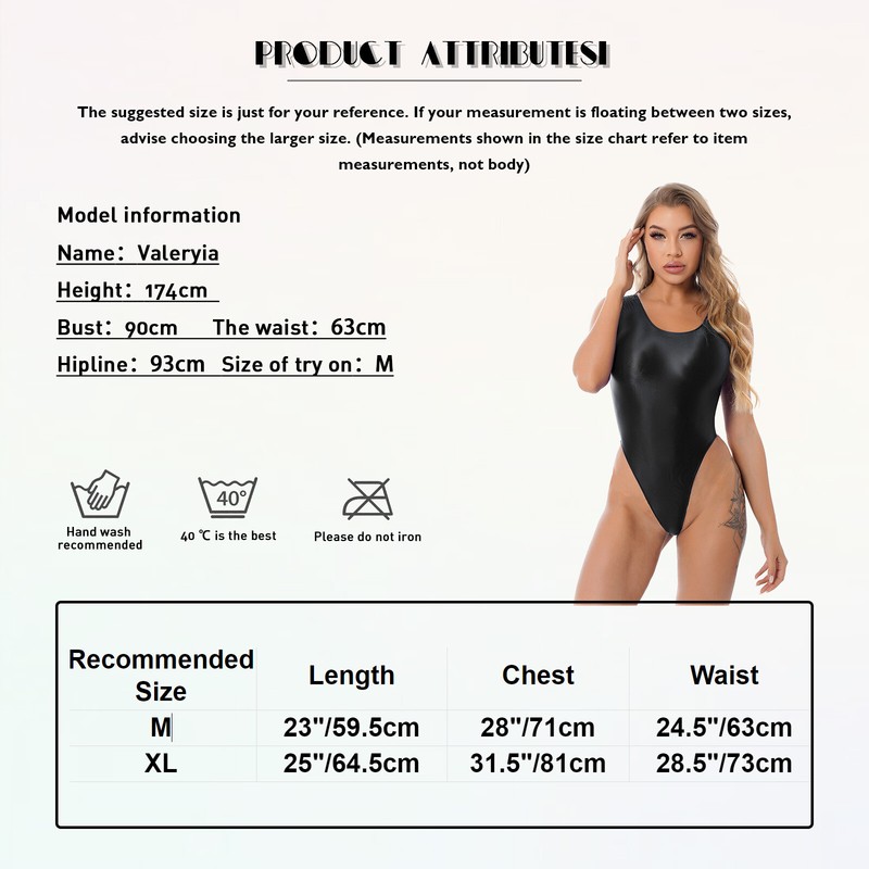 Womens Glossy Sleeveless High Cut Bodysuit One-piece Swimsuit for Yoga Sports.