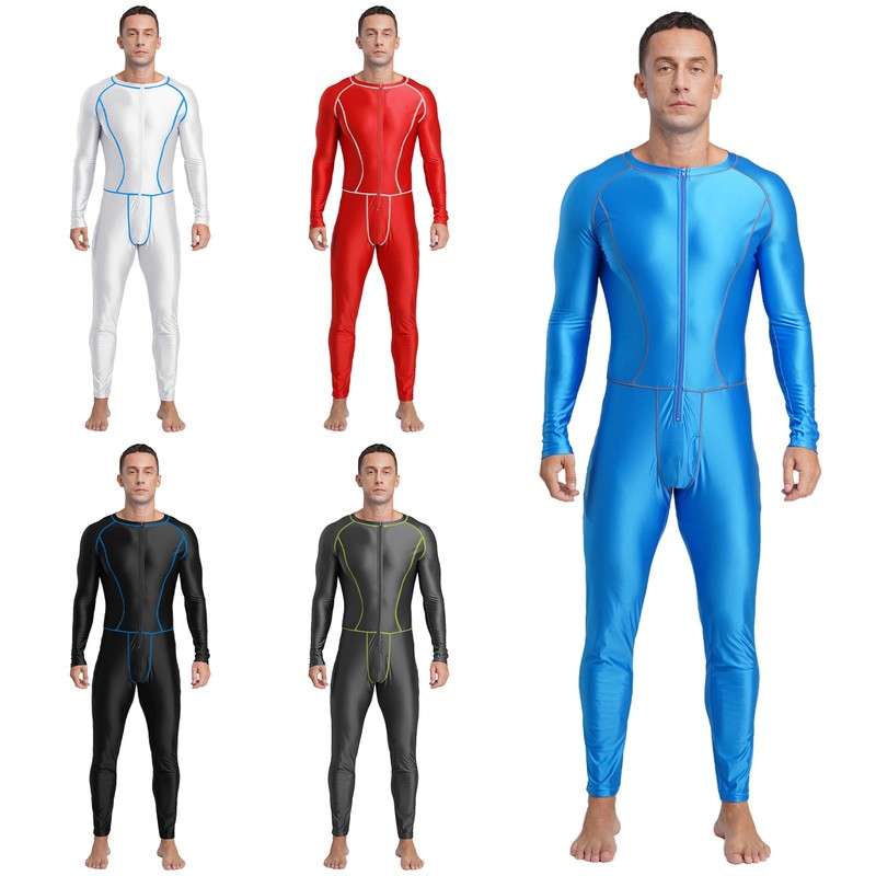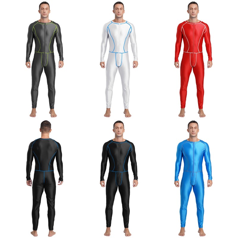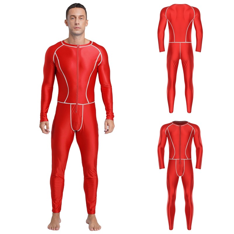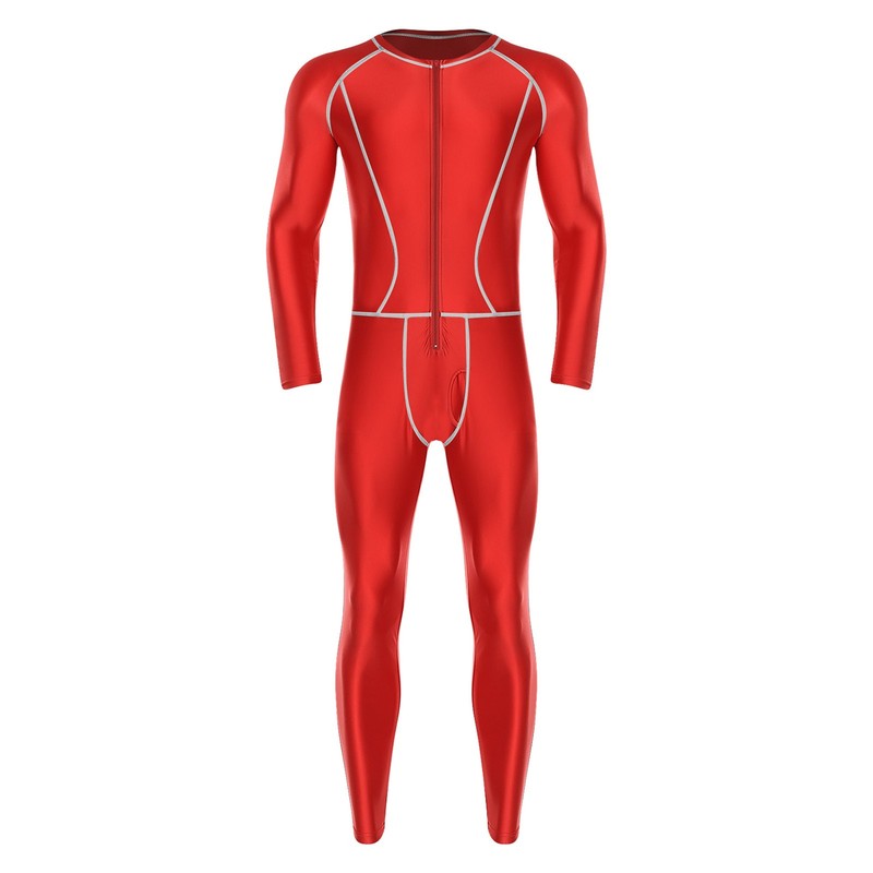 V neck long sleeve crotchless bodystocking stretchy fishnet bodysuit for men.
