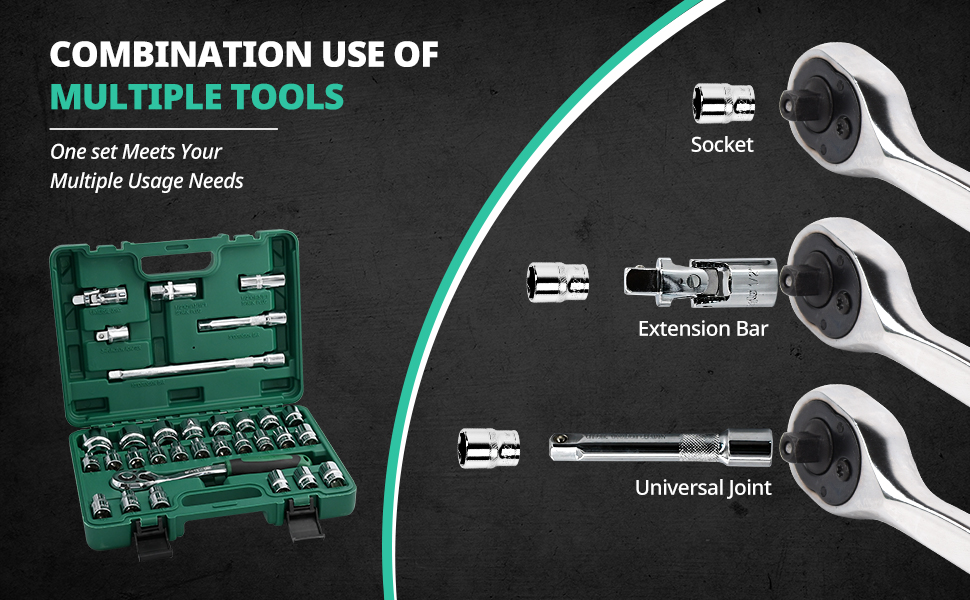 - 【WIDE APPLICATION】 Select socket, universal joint, and extension bar compatible with 1/2 "ratchet wrench for combination use. A useful socket wrench set tool kit for automobile repairing and maintenance. Ideal for home, car, garages, DIY, work spaces, or professional auto repair.