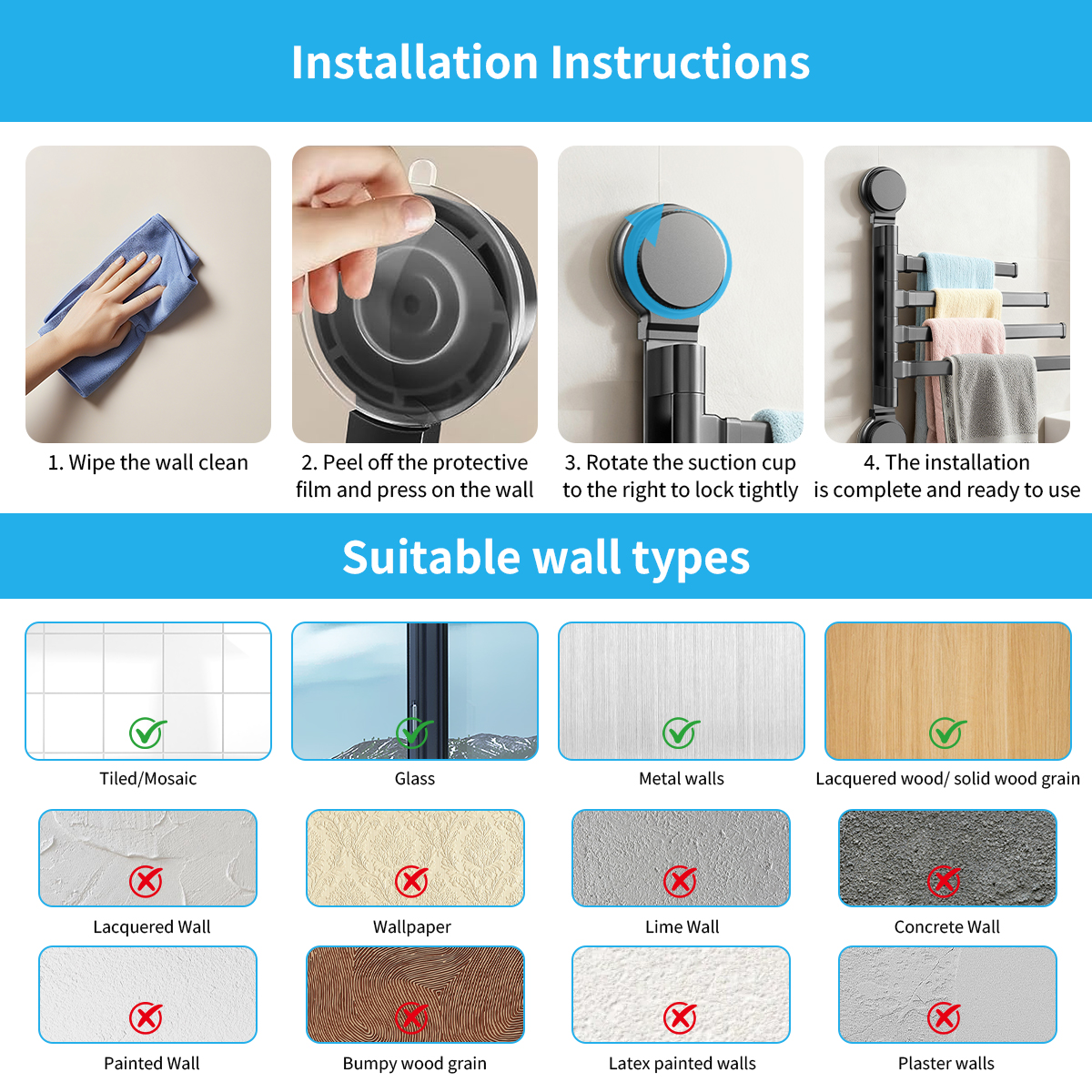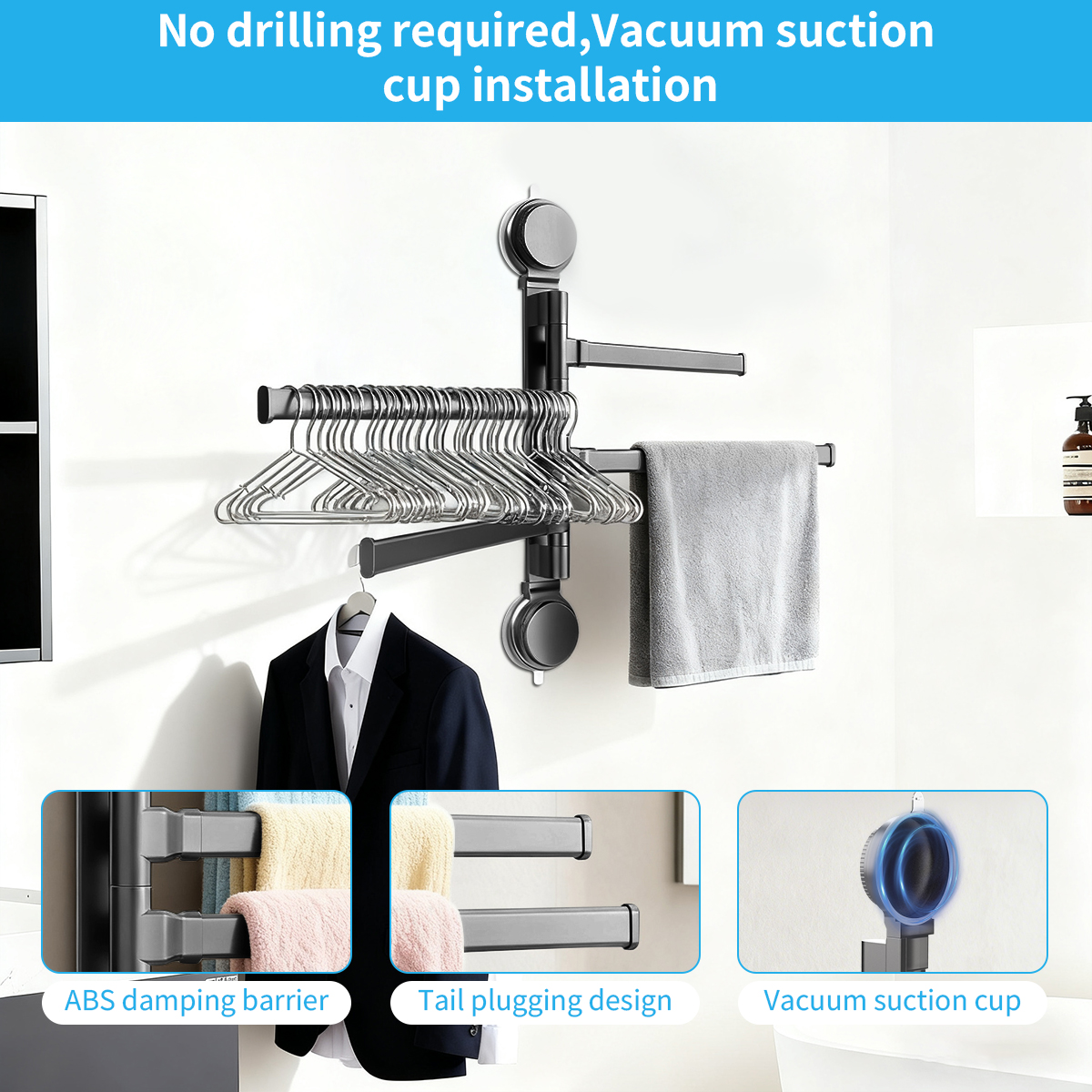 【Easy To Install】All the installation hardware included, installation is easy and takes only a moment; Applicable to all kinds of Bathroom, laundry room, toilet, bedroom, shower room, closet, wardrobe, kitchen, over the door, balcony and swimming pool, etc