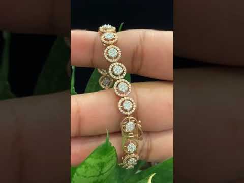 Elegantes Tennisarmband mit 3,43 Karat runden, brillantgeschliffenen Naturdiamanten im Halo-Design, gefertigt aus 14-karätigem Roségold mit Punzierung. Perfekt für jeden Anlass!