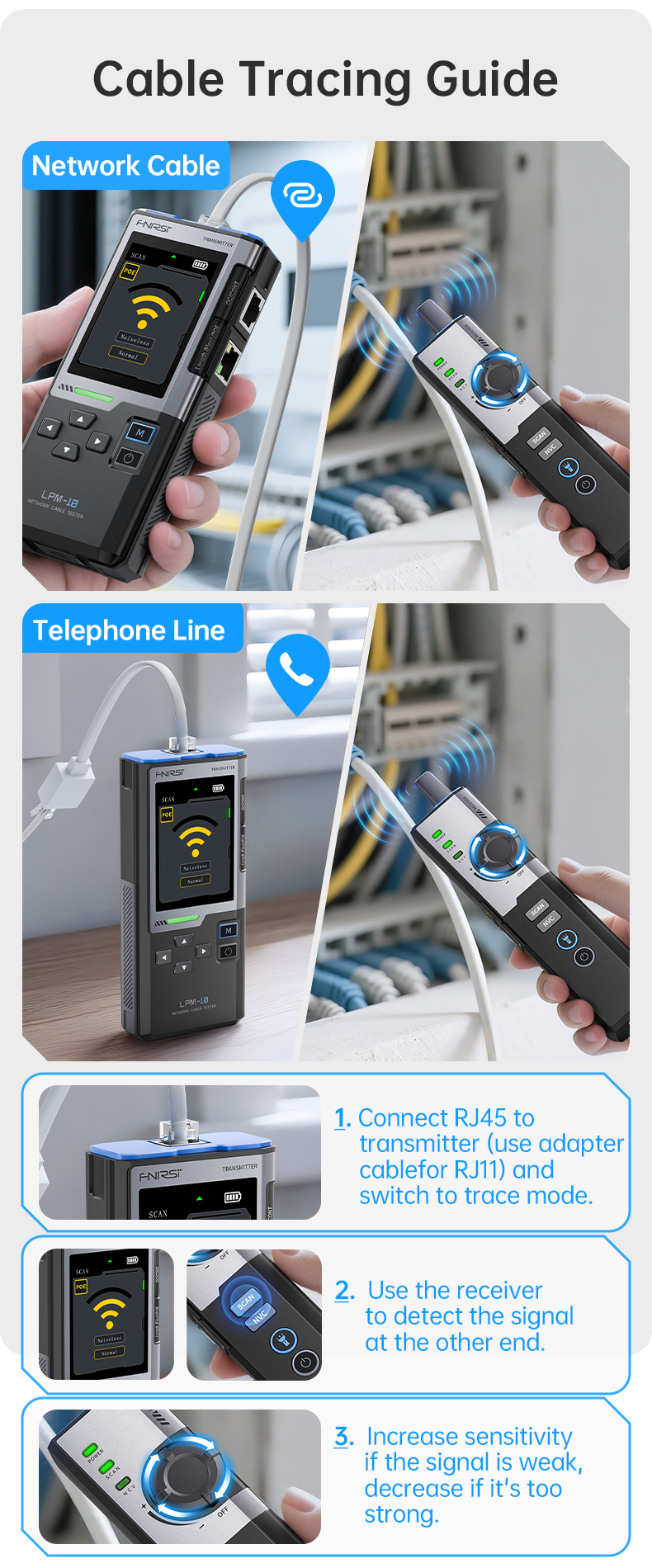 FNIRSI LPM-10A Intelligent Cable Finder RJ45/RJ11 Line Tester Network Repair