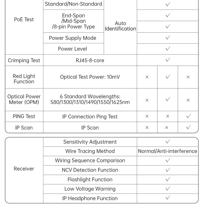 Receiver function supports sensitivity adjustment, line search mode, line alignment, NCV detection function, flashlight function, low voltage prompt, headphone function