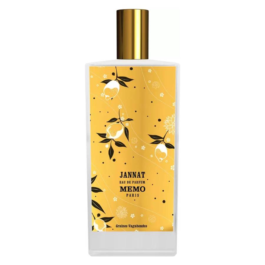 Launch year: 2008. Fragrance Family: Floral. Key notes: Neroli, Petitgrain, Bergamot, Amalfi Lemon, Frangipani, Mandarin Orange, Musk, Clary Sage, Liatris, Tonka Bean. Design house: Memo Paris. Design house category: niche fragrance brand. Scent name: Jannat. Gender: Unisex. Category: Fragrance. Collection: Graines Vagabondes. SubType: EDP Spray. Size: 2.5 oz. Barcode: 3700458603187. Memo Paris Unisex Jannat EDP 2.5 oz Fragrances 3700458603187.
