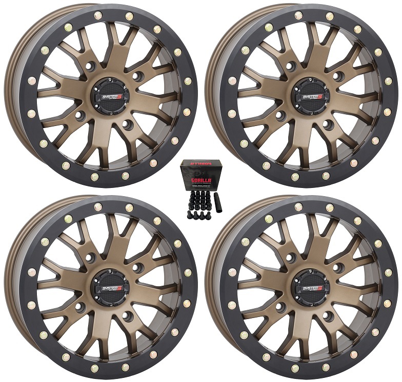 System 3 Offroad SB-4 Beadlock Wheels feature a lightweight design with bold style, at an incredible value. (Depending on the machine your stock lug nuts may not work with this wheel. They MAY require a different style lug nut that we offer) Center cap included.