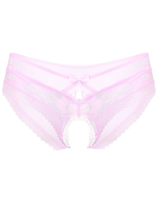 Durchsichtige Herren-Spitzenslips Bowknot Strappy Crotchless Unterhose.