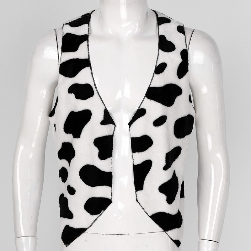 Herren-Weste mit offener Vorderseite, V-Ausschnitt, ärmellos, mit Kuh-Print.