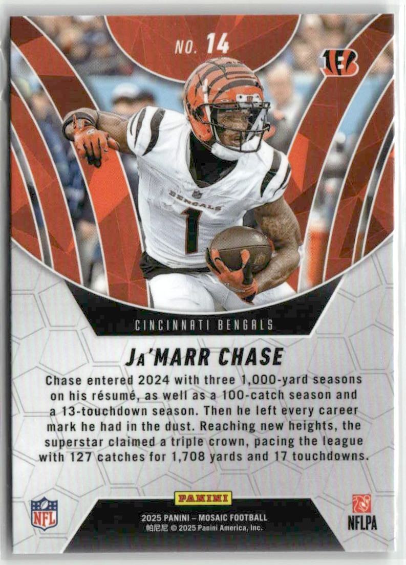 | Ja'Marr Chase 2025 Panini Mosaic Elevate Cincinnati Bengals #14 | ||||||||||||||||