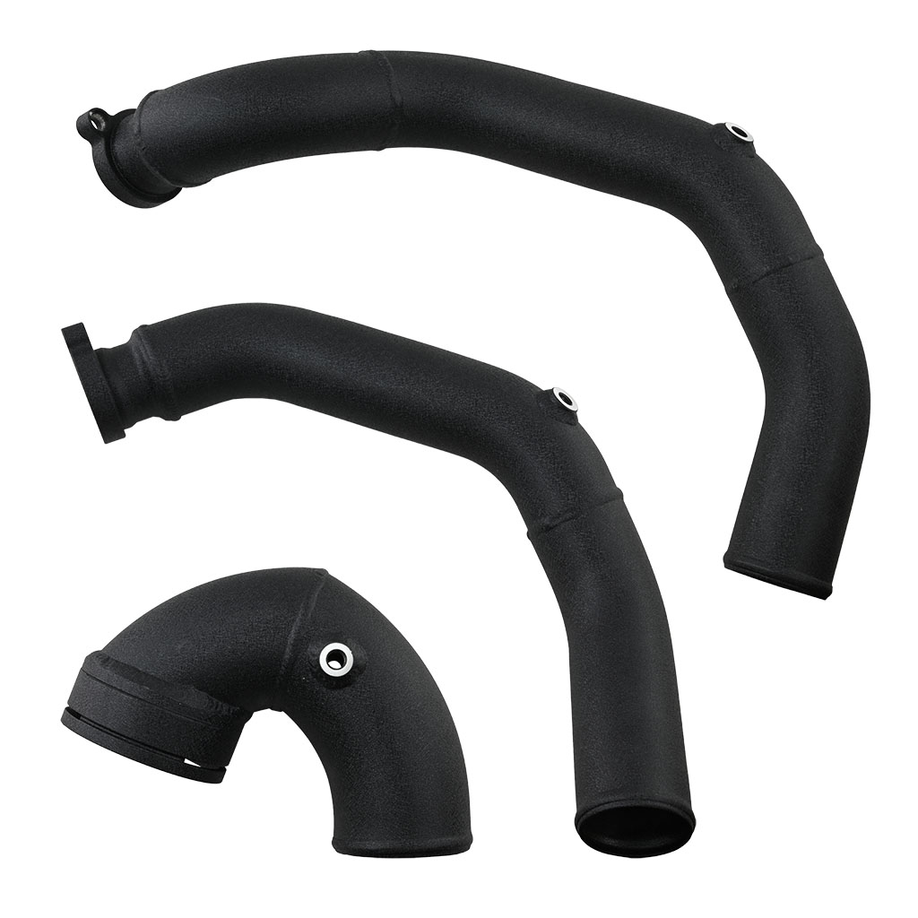 Die Verbindungen werden mit hochwertigen Silikonkupplungen mit vierfacher Verstärkung und 5 mm Wandstärke hergestellt, die maximale Beständigkeit gegen hohen Druck und Temperatur bieten. Das gesamte Set wurde entwickelt, um einen stabilen Boost-Betrieb, eine schnellere Gasannahme und eine verbesserte Leistung sowohl im täglichen Fahren als auch im Motorsport zu gewährleisten.