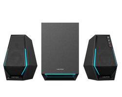 The Edifier G1500 is a pair of wireless gaming speakers designed to deliver immersive audio and dynamic lighting for your setup. Each speaker features a 2.5″ full-range driver paired with a 4″ subwoofer in a sturdy enclosure for clear mids, crisp highs and powerful bass. DSP processing ensures balanced sound, while the mechanical hard-line design brings a cyberpunk aesthetic to your desk. Stream wirelessly via Bluetooth 5.3 or connect through USB-A, USB-C or 3.5 mm AUX for maximum compatibility.