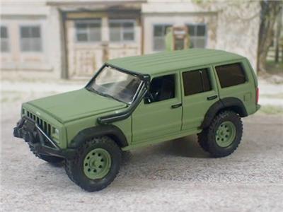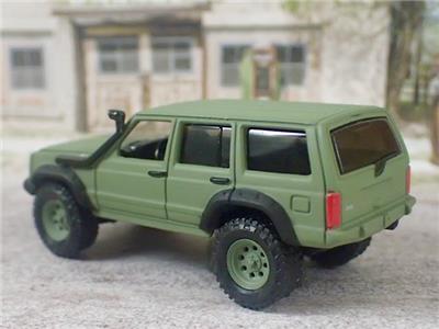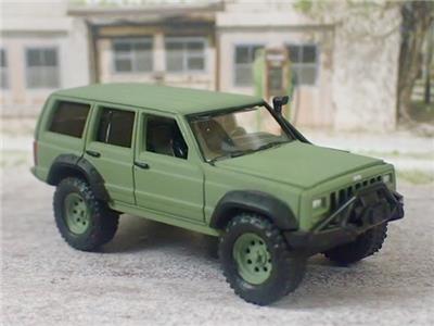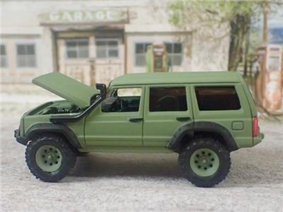 RARE JEEP CHEROKEE 4X4 OFF - ROADER DIE-CAST MODEL BY JOHNNY LIGHTNING COLLECTIBLES. FINISHED IN MATTE GREEN WITH BLACK FENDER FLAIRS AND A BLACK INTERIOR. FEATURING AN OPENING HOOD TO SHOW OFF THE DETAILED ENGINE JUST LIKE THE REAL THING. INTRICATE DETAIL FROM ONE END OF THE MODEL TO THE OTHER. ALL RIDING ON KNOBBY RUBBER TIRES MOUNTED ON MATTE GREEN MAG WHEELS. A TRUE WORK OF MINIATURE AUTOMOTIVE ART.