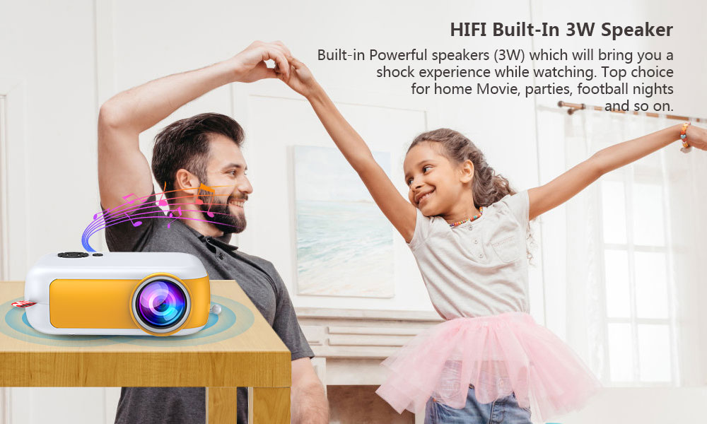 ☀ Projektorgröße: 5.5 x 3.9 x 2.2 Zoll. Es hat nur die Größe einer Handfläche. Perfekt für Outdoor-Aktivitäten wie Reisen und Camping.