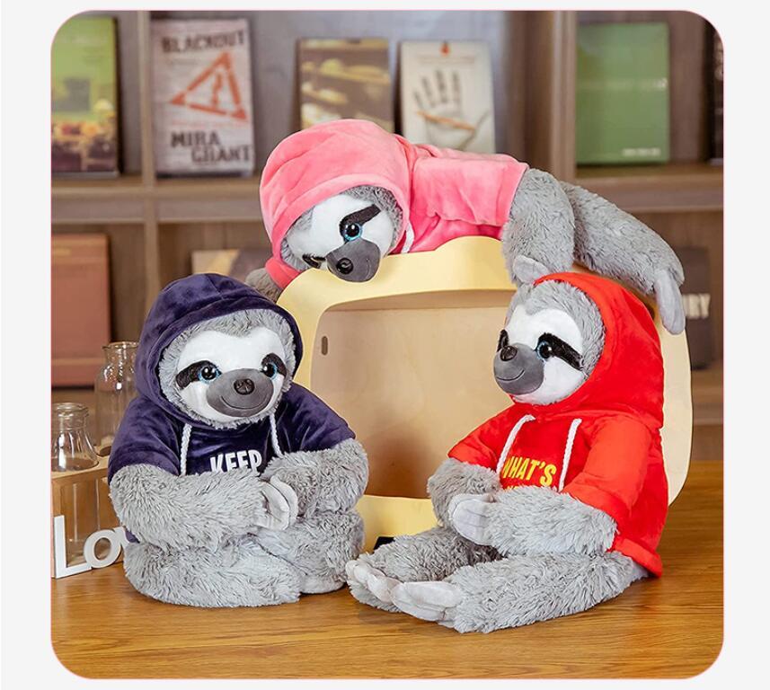 Faultier Spielzeug mit Kleidung. Der Kapuzenpullover kann entfernt werden.