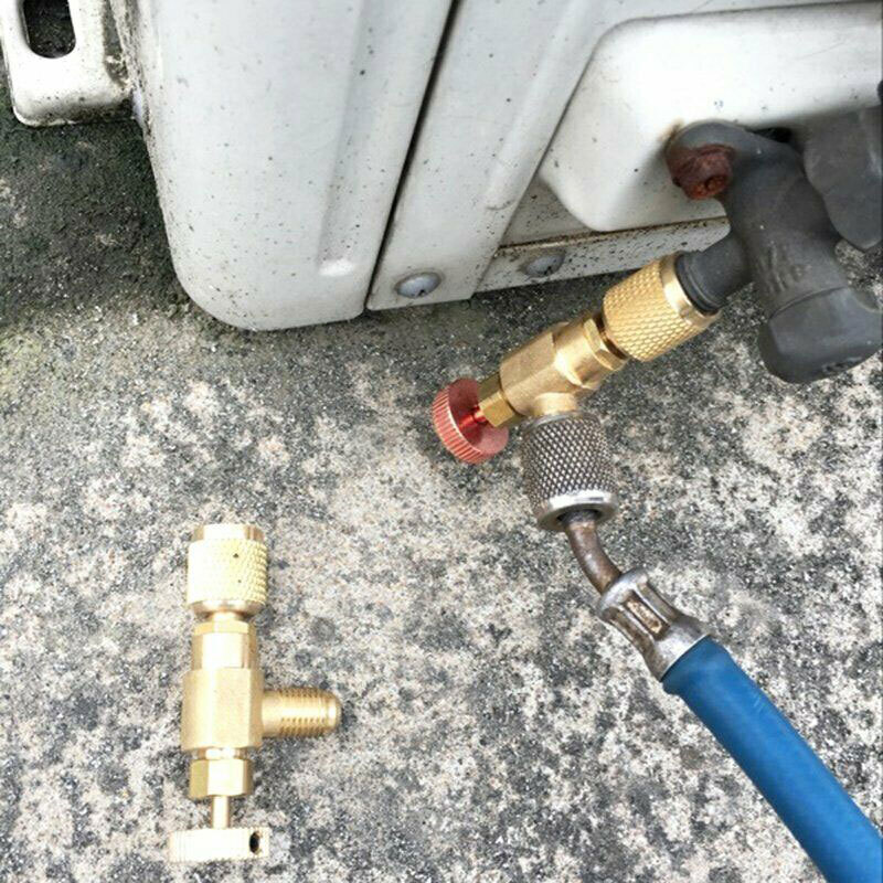 Feature: *100% nagelneu und hohe Qualität. * Metallmaterial, hohe Festigkeit und Härte, langlebig. * Für R410A. * Gute Verarbeitung, zuverlässig und einfach zu bedienen. * Am Ende eines Ladeschlauchs installieren und den Kältemittelverlust während der Wartung minimieren. * Mit diesem Werkzeug brennt kein Kältemittel mehr an den Händen.
