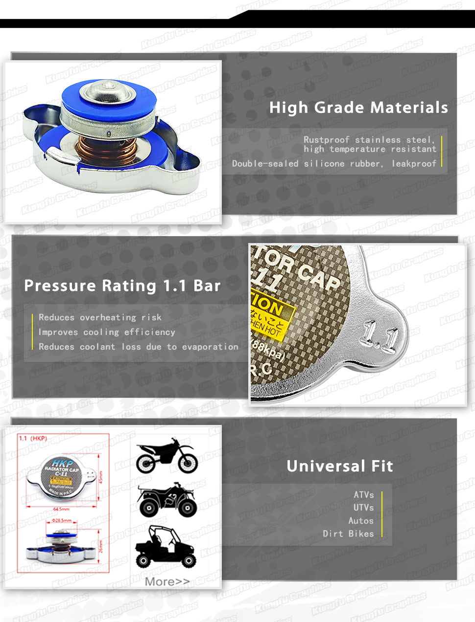 Cooling System Pressure Cap Pressure Cover 1.1 Bar Universal for Dirt Bike ATV