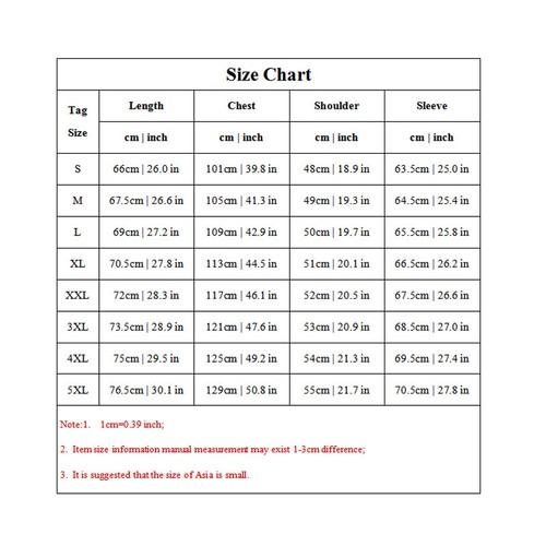 Specifications: 100% Brand new and high quality. Size:S,M,L,XL,XXL,3XL,4XL,5XL Color: red,brown,black,dark blue Material: Faux Leather Sleeve length:long sleeve Neckline:turn down collar Pattern:solid color Season:winter Note: 1.Due to the light and screen difference, the item's color may be slightly different from the pictures. Please understand. 2.Please allow 2-3% error due to manual measurement.Please make sure you don’t mind before you mid. 3.Size doesn’t fit all.Please carefully check size chart and select the size based on your real size. Wash before wear Cold gentle machine wash Do not bleach Do not tumble dry Drip dry Package:1 pcs PU Jacket
