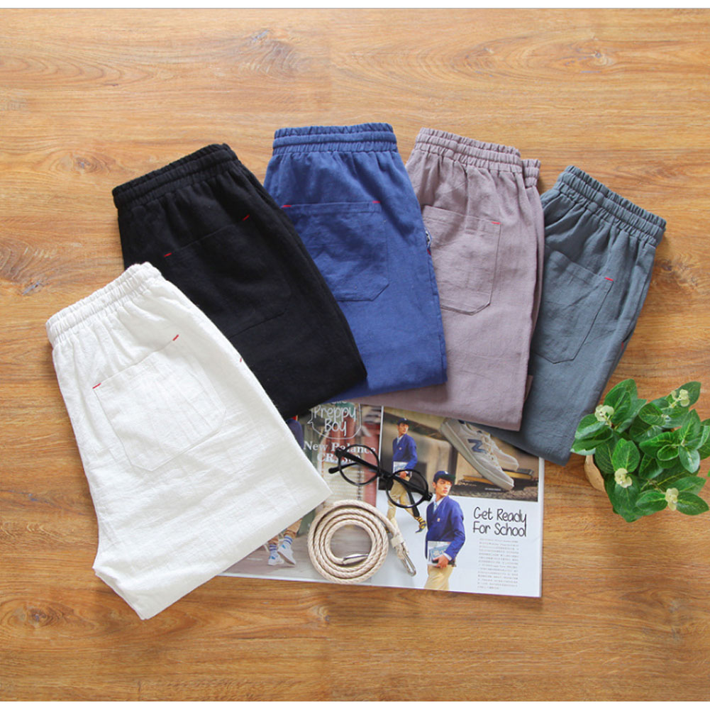 Men's Shorts Solid Colors Drawstring Cotton Linen Loose Beach Summer Hot Pants