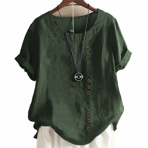 Tunic Shirt Blouse T-Shirt Tees Tops Baggy Loose Casual Linen Cotton Women