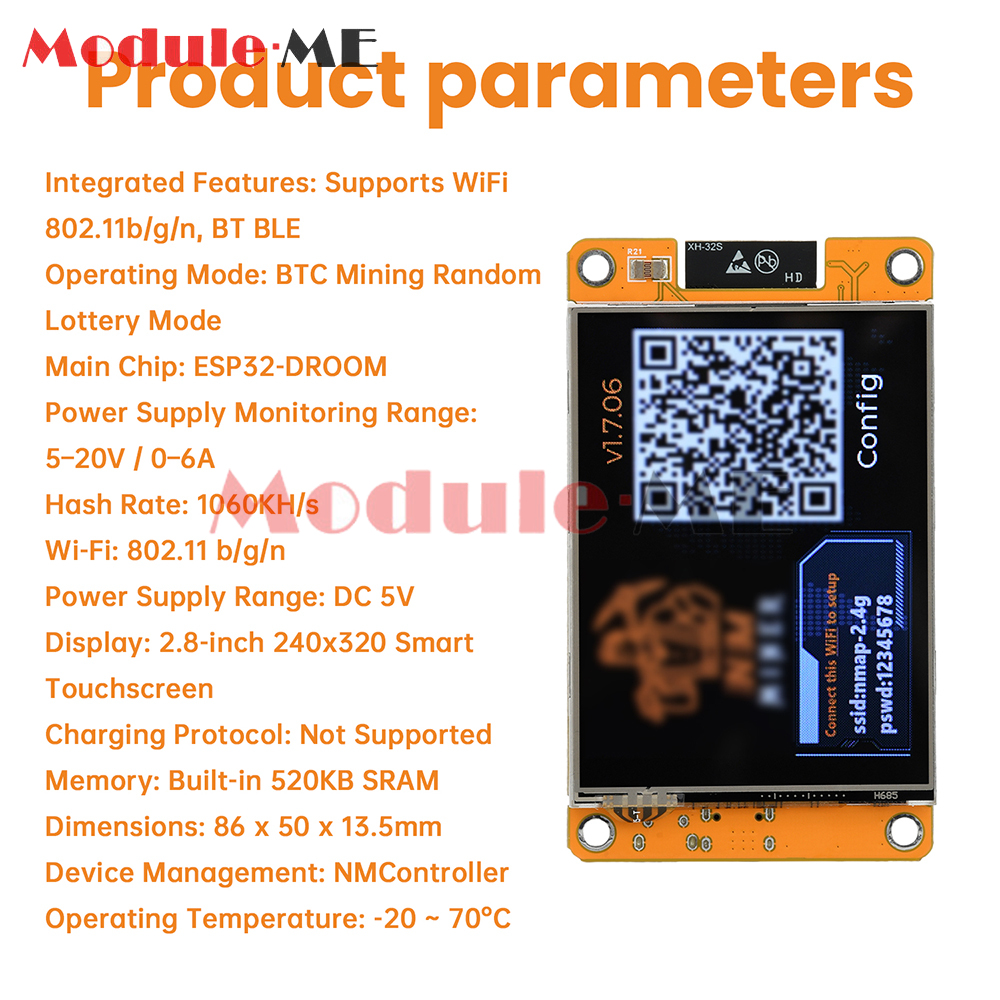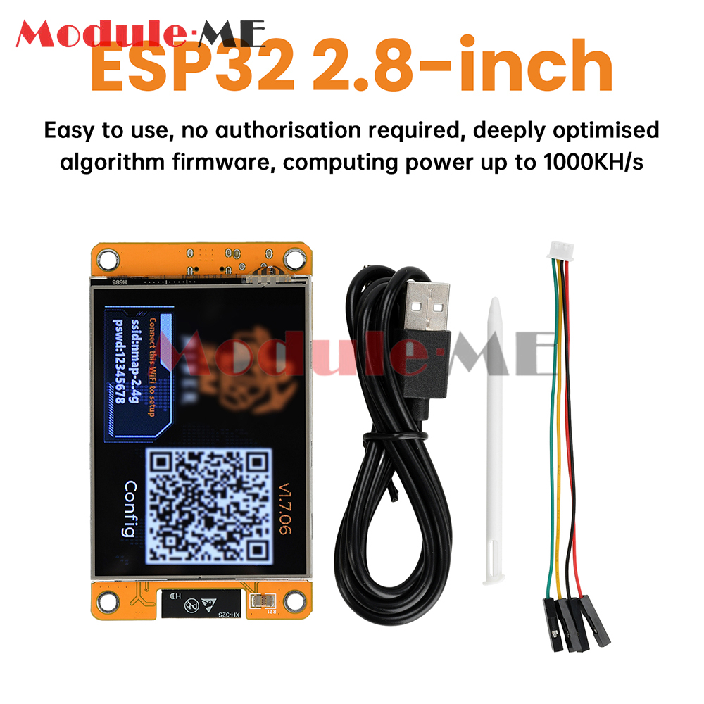 Hashrate 1060KH/s ESP32 Smart Display Crypto BTC Solo Lottery ESP32-2432S028 WROOM