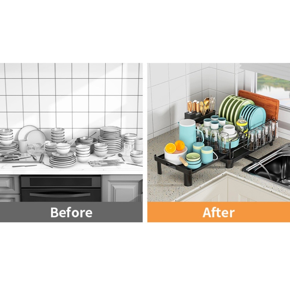 *Tool-free Assembly: This dish drying rack is incredibly easy to install without any tools required. The straightforward installation guide allows you to set it up quickly and efficiently, saving you time and effort.