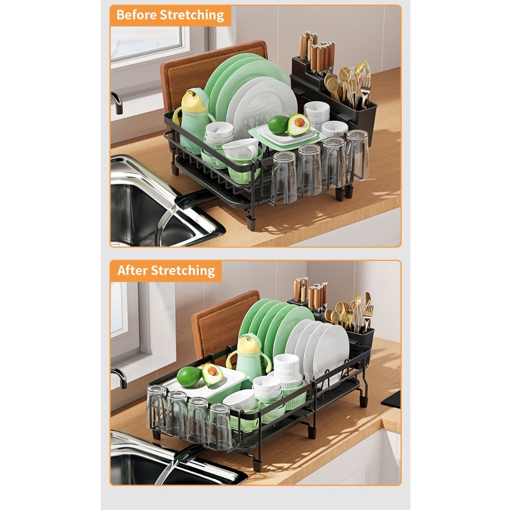 Space Saving Kitchen Dish Rack with Automatic Drainage and Extendable Design