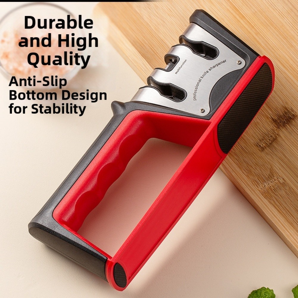 *Versatile Functionality: This handheld sharpener is expertly designed to accommodate a range of cutting tools, including straight and serrated knives, as well as scissors, making it an indispensable addition to your kitchen toolkit.