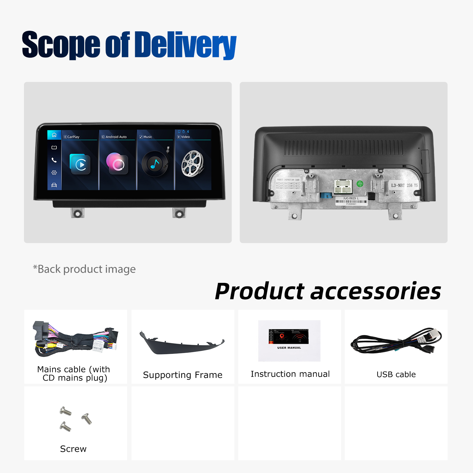 Screen: 10.25 inch 1920*720 HD IPS capacitive touch screen,178° large viewing angle