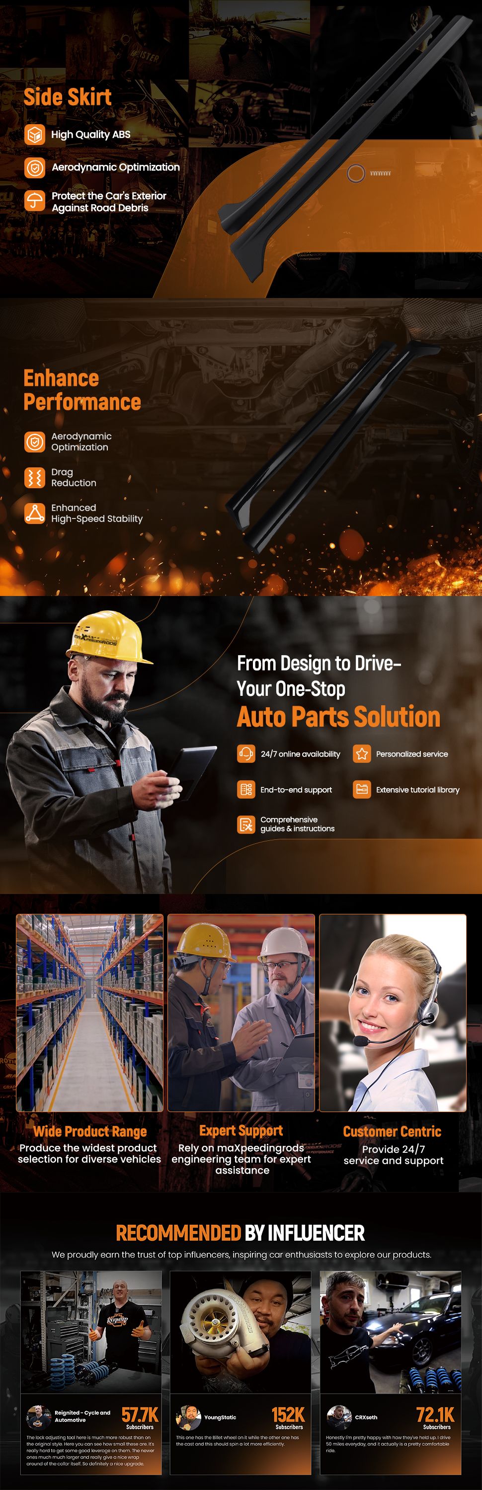 By directing airflow to create additional downforce, Side Skirt Extensions help improve traction and handling, especially during high-speed driving. This results in better control and a safer driving experience.
