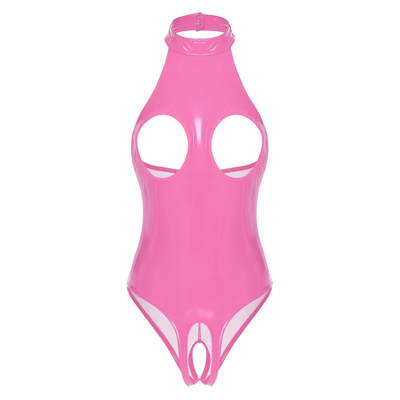 Womens Jumpsuit Sexy Leotards Open Cups Bodysuit Halter Neck Nightwear Catsuit