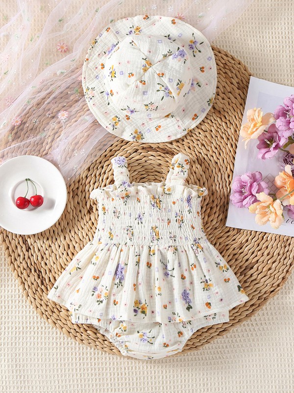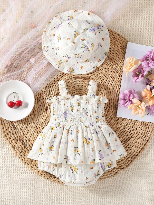The combination of the dress and the hat forms a complete outfit set, which is not only fashionable but also can protect the baby from the sun during outdoor activities.